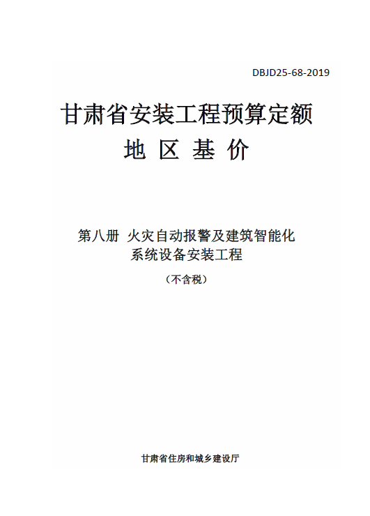 DBJD25-68-2019甘肃省安装工程预算定额地区基价第八册火灾自动报警及建筑智能化系统设备安装工程除税