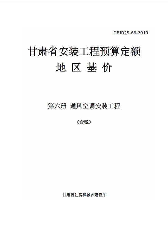DBJD25-68-2019甘肃省安装工程预算定额地区基价第六册通风空调安装工程含税