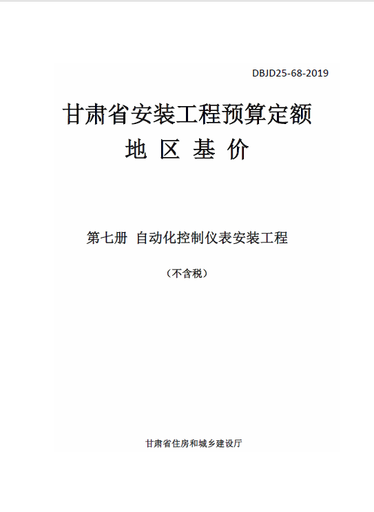 DBJD25-68-2019甘肃省安装工程预算定额地区基价第七册自动化控制仪表安装工程除税