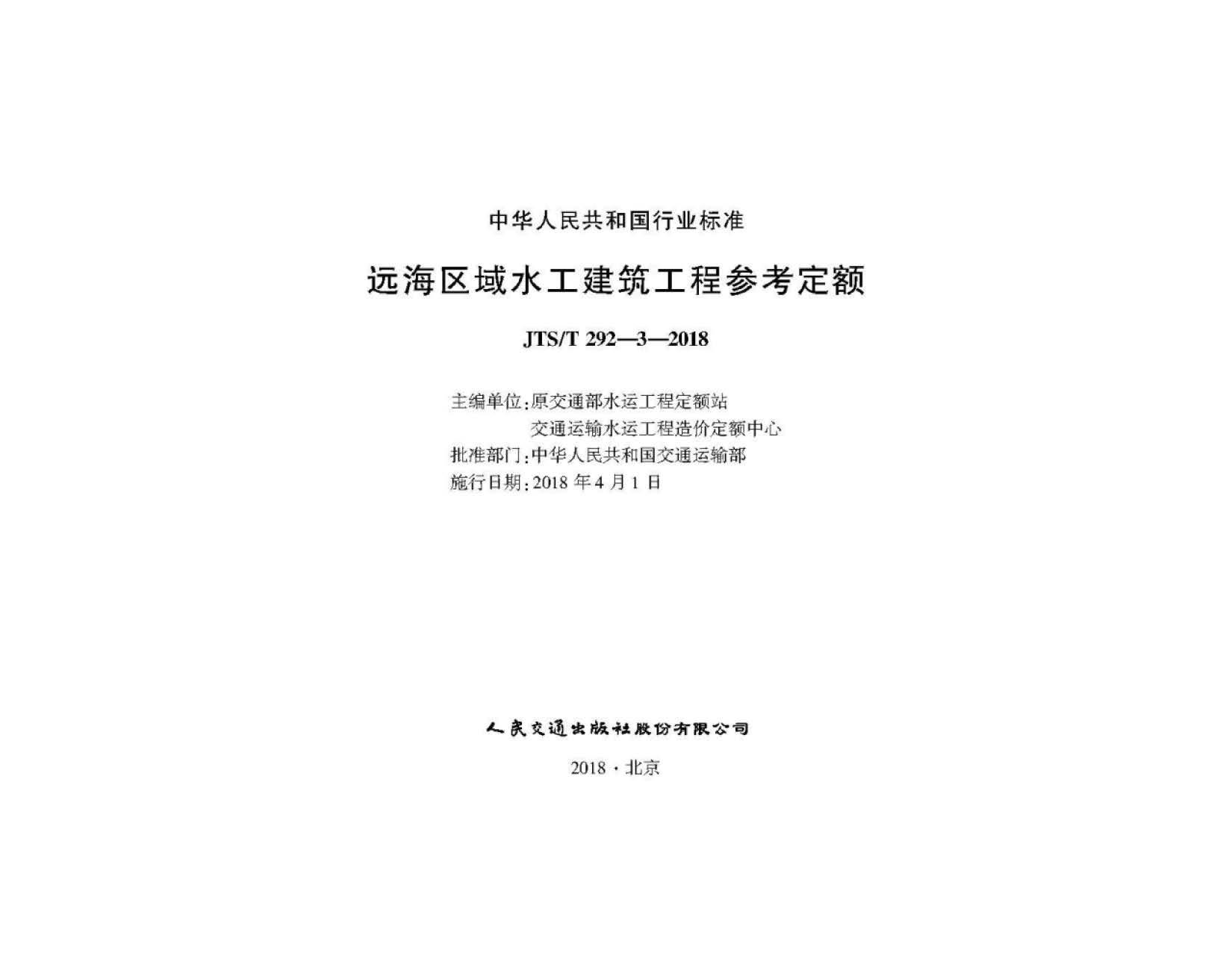 JTS∕T_292-3-2018_远海区域水工建筑工程参考定额