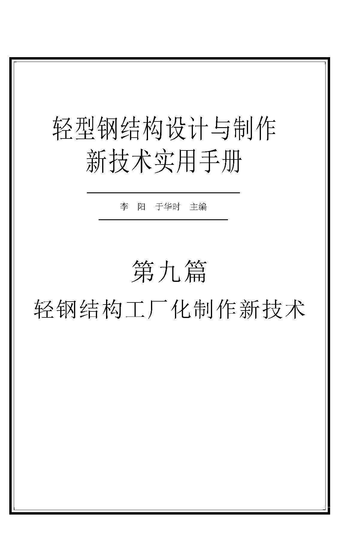 订单名称:轻型钢结构设计与制作新技术实用手册第九篇轻钢结构工厂化制作新技术