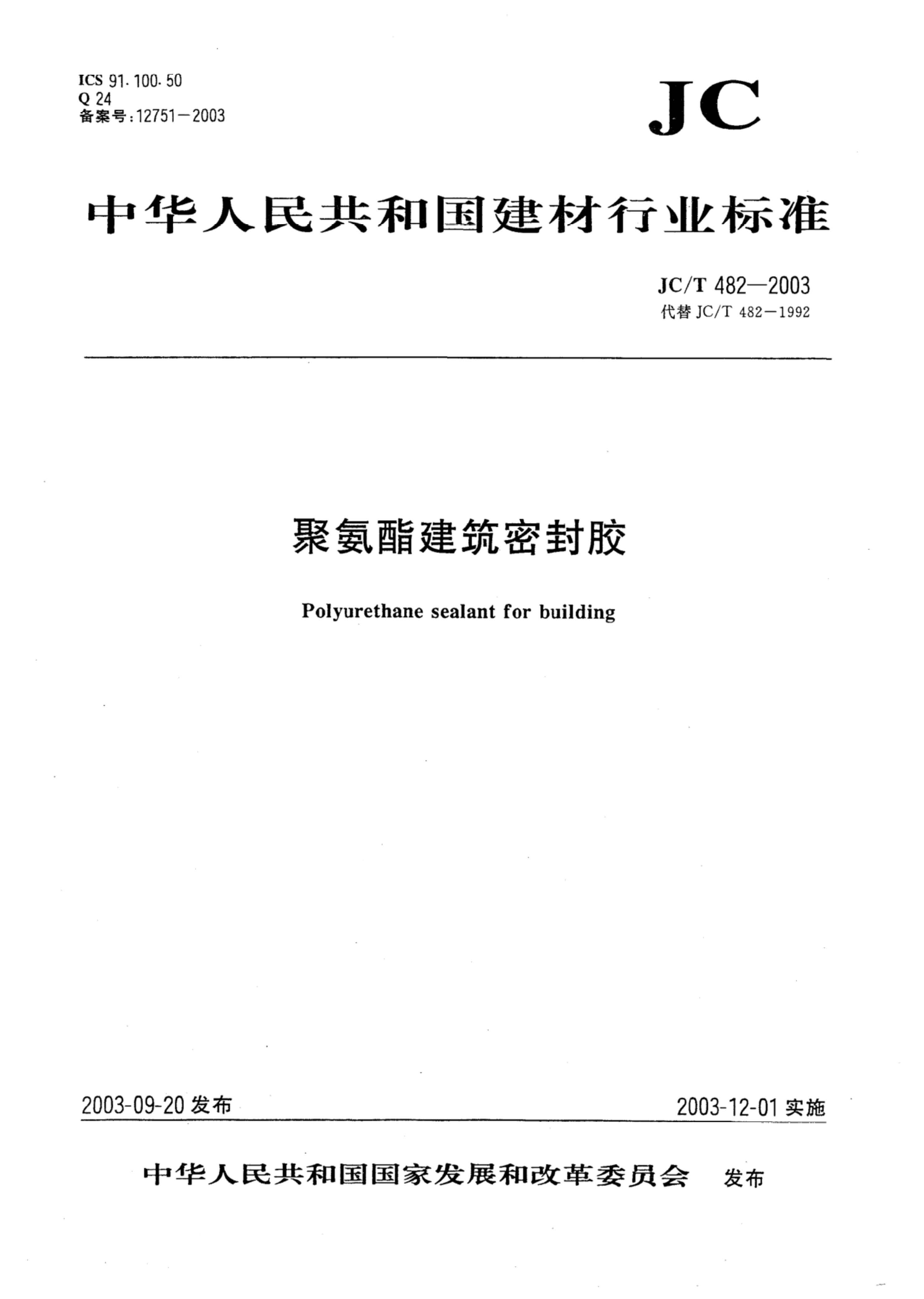 JCT482-2003聚氨酯建筑密封胶