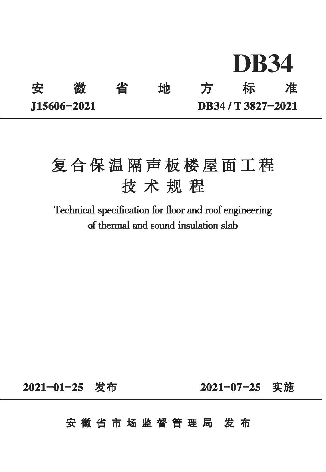 订单名称:DB34∕T3827-2021复合保温隔声板楼屋面工程技术规程
