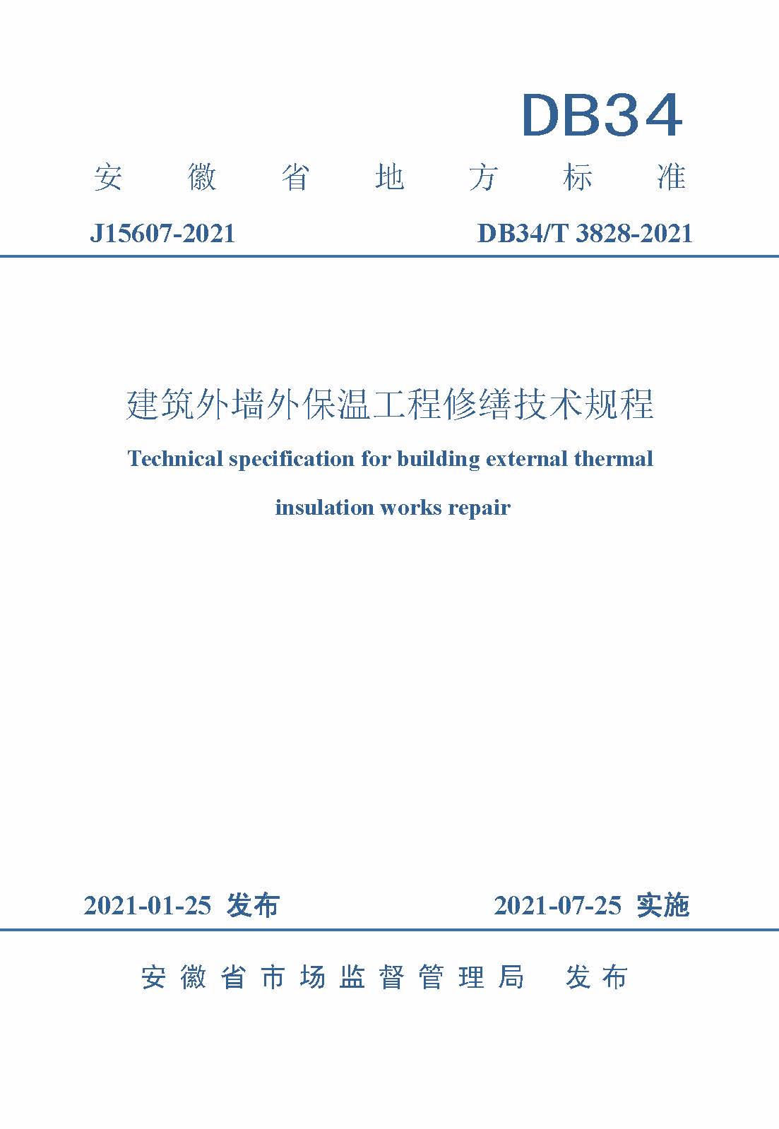 订单名称:DB34∕T3828-2021建筑外墙外保温工程修缮技术规程