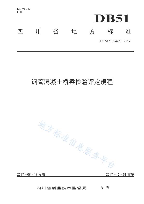 订单名称:DB51∕T2425-2017钢管混凝土桥梁检验评定规程