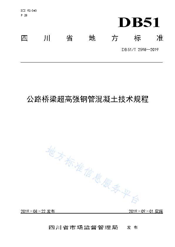 订单名称:DB51∕T2598-2019公路桥梁超高强钢管混凝土技术规程