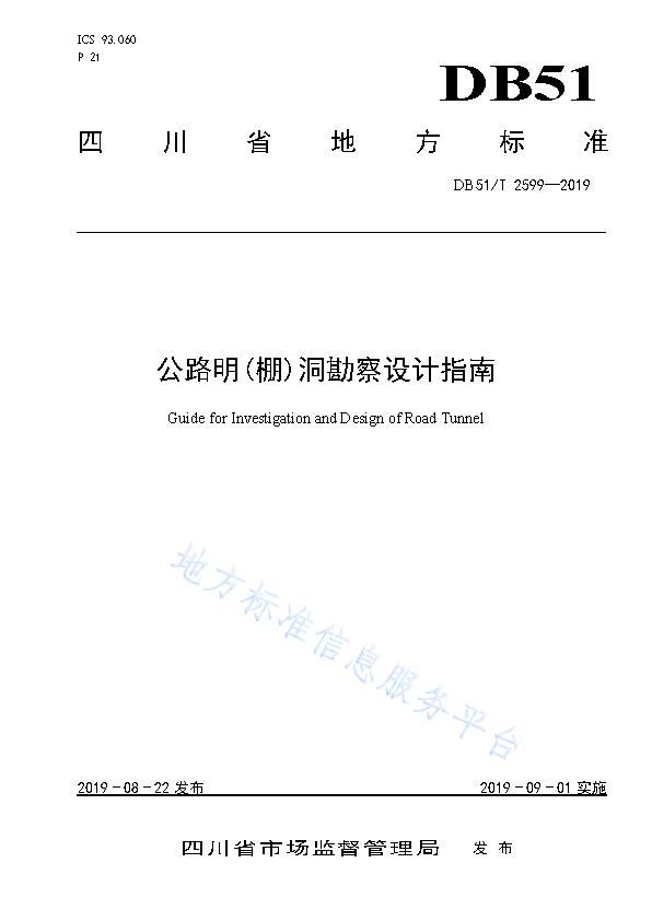 订单名称:DB51∕T2599-2019公路明(棚)洞勘察设计指南