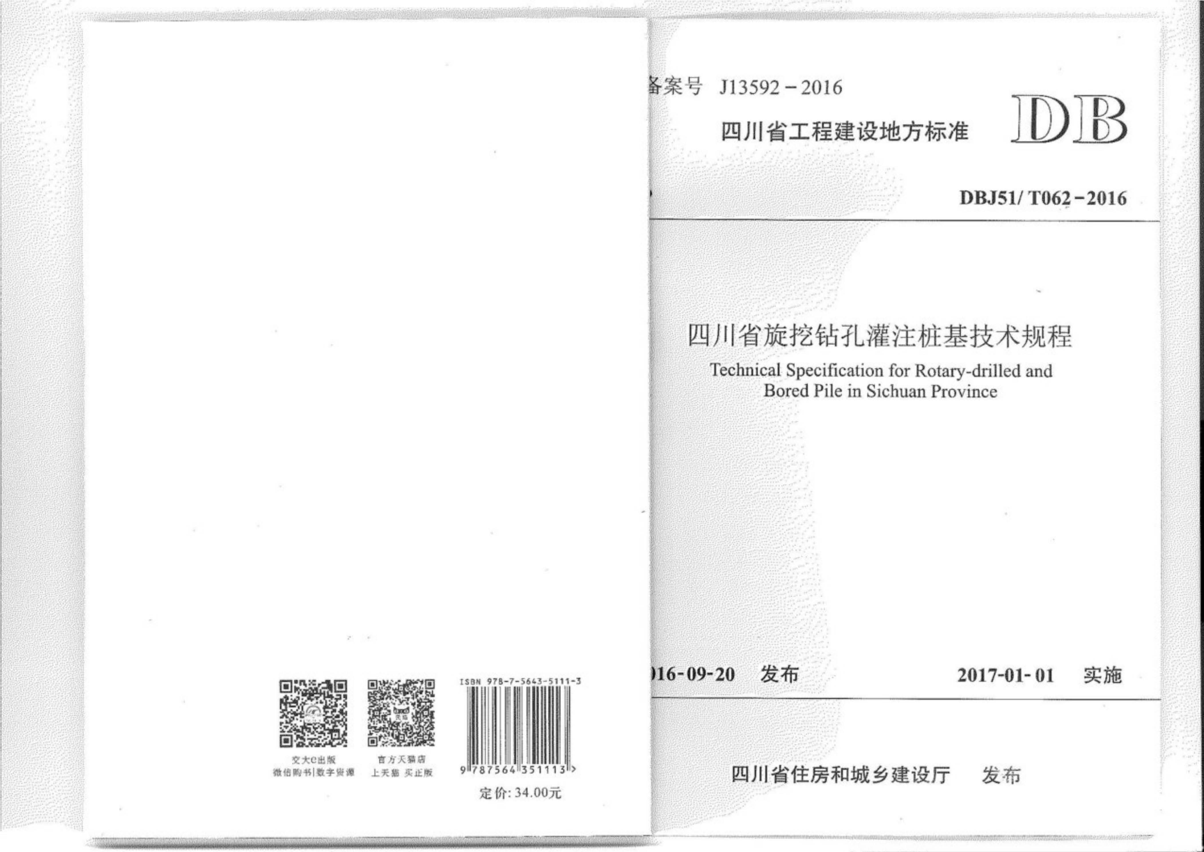 DBJ51T062-2016四川省旋挖钻孔灌注桩基技术规程