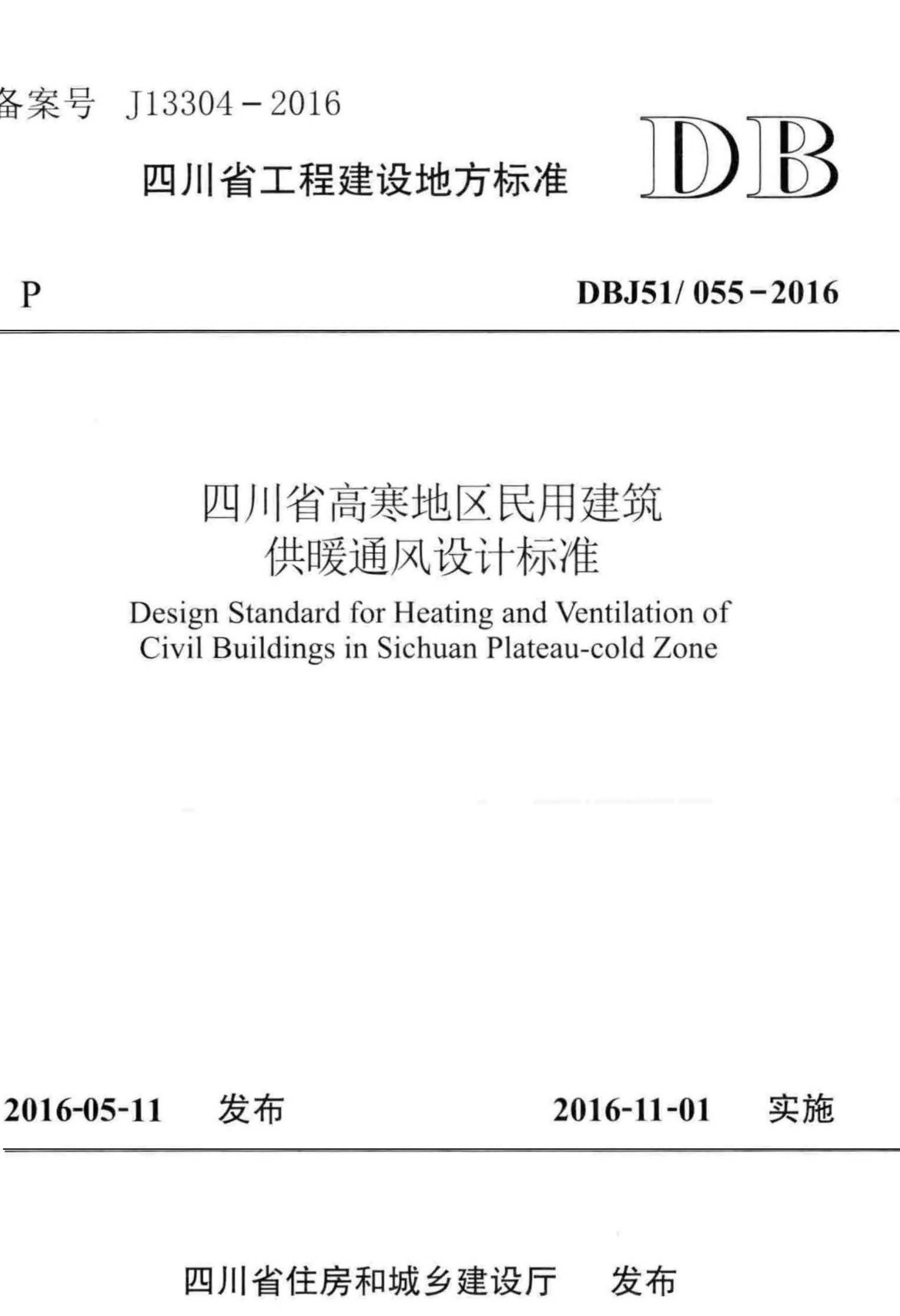 订单名称:DBJ51055-2016四川省高寒地区民用建筑供暖通风设计标准