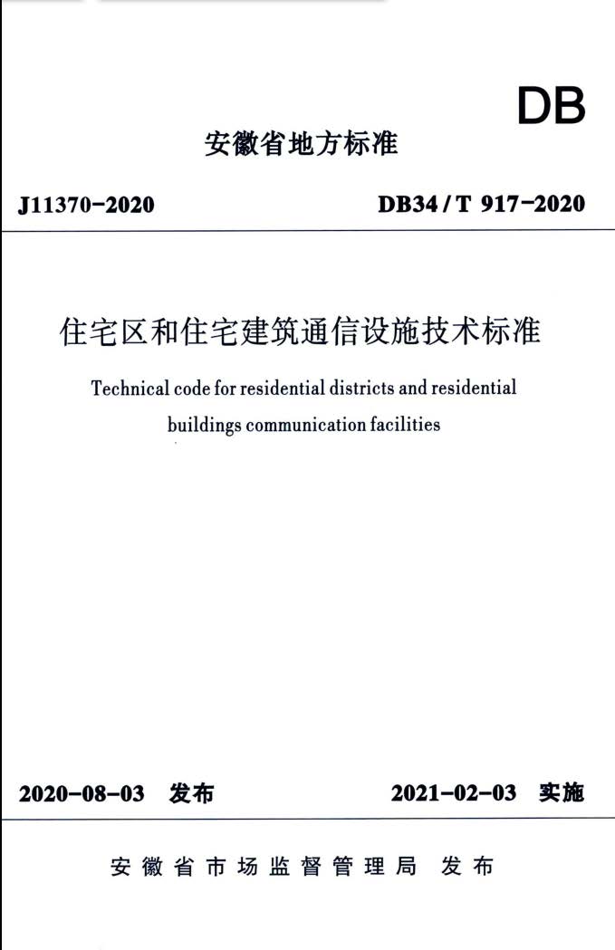 DB34∕T917-2020住宅区和住宅建筑通信设施技术标准