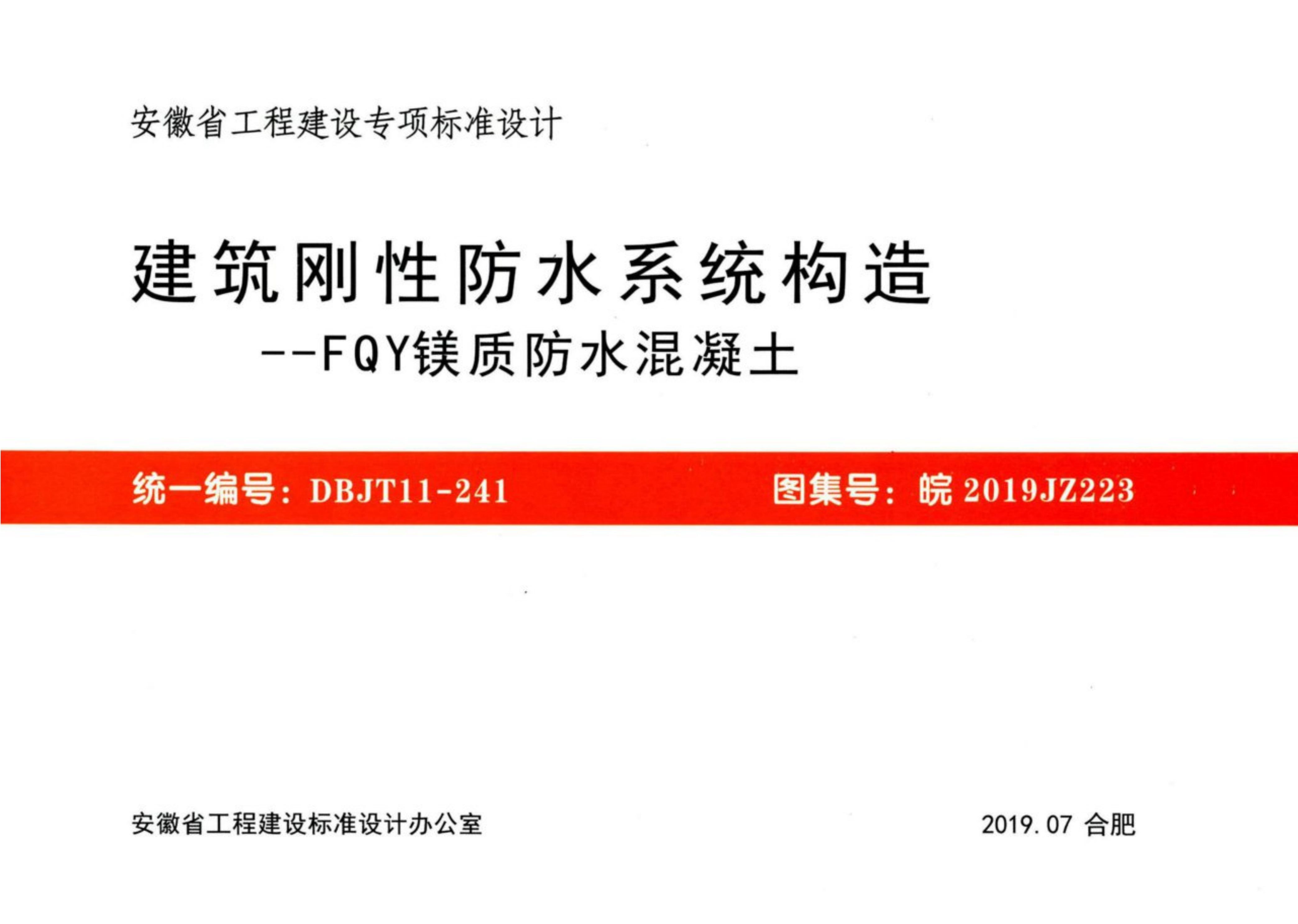 皖2019JZ223建筑刚性防水系统构造FQY镁质防水混凝土