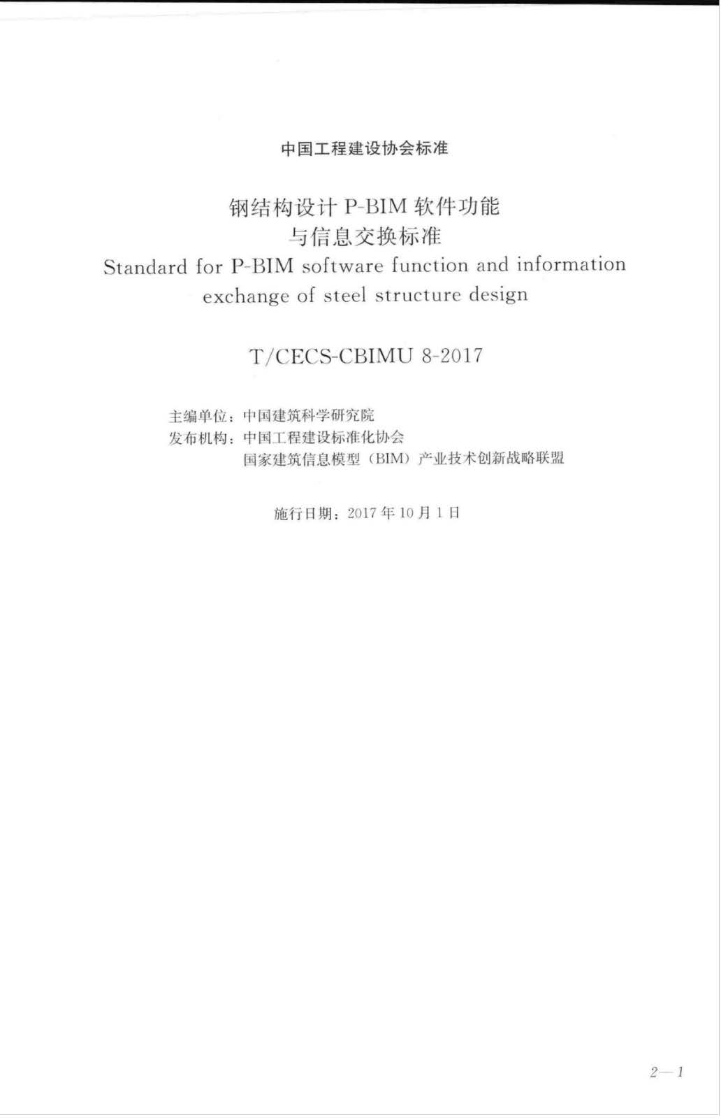 T∕CECS-CBIMU8-2017钢结构设计P-BIM软件功能与信息交换标准