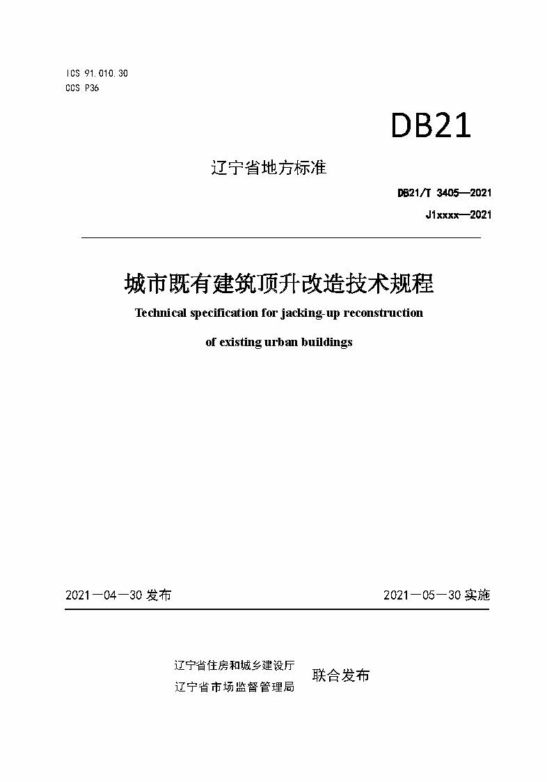 订单名称:DB21∕T3405-2021城市既有建筑顶升改造技术规程
