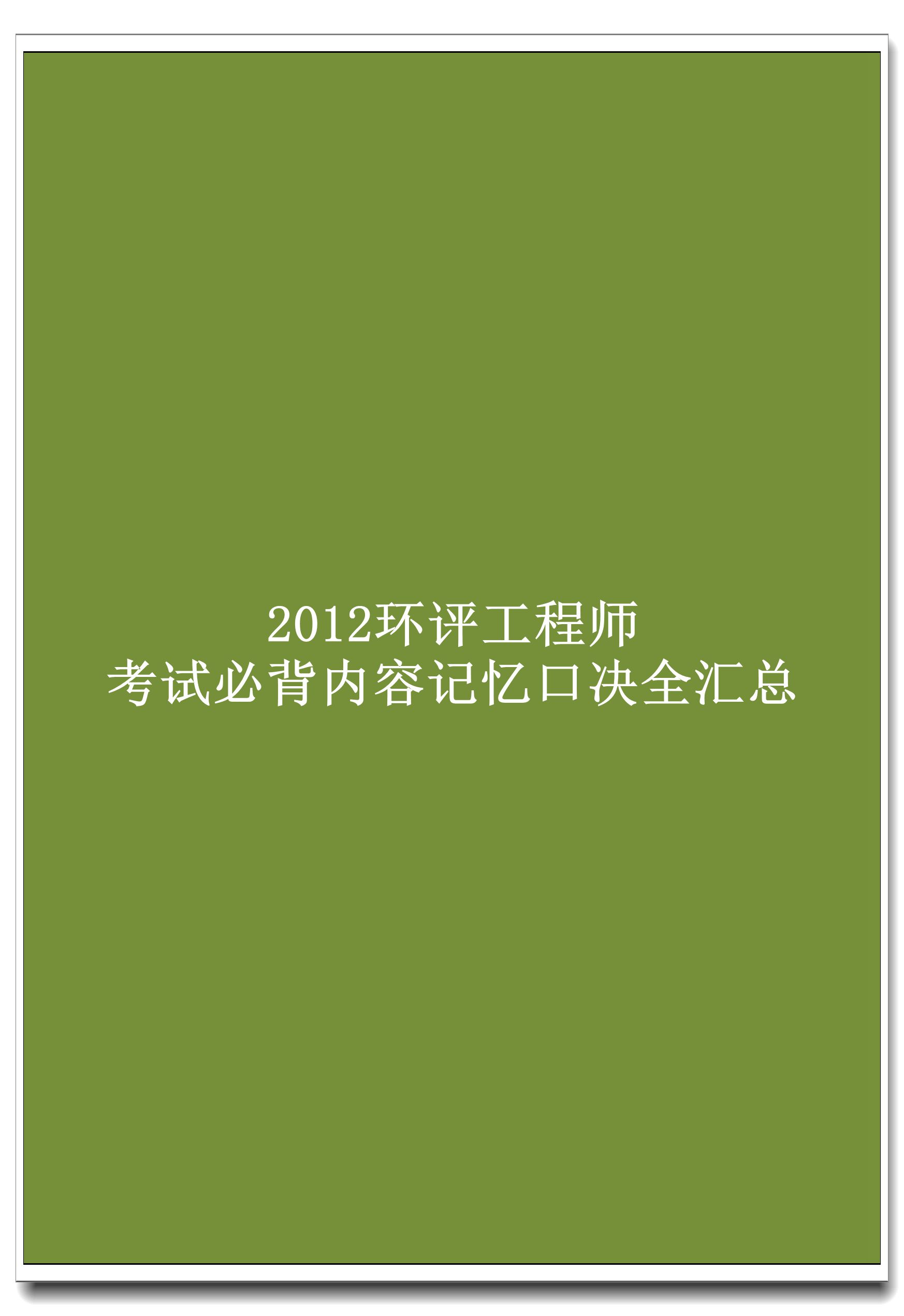 订单名称:2012环评工程师考试必背内容记忆口决全汇总