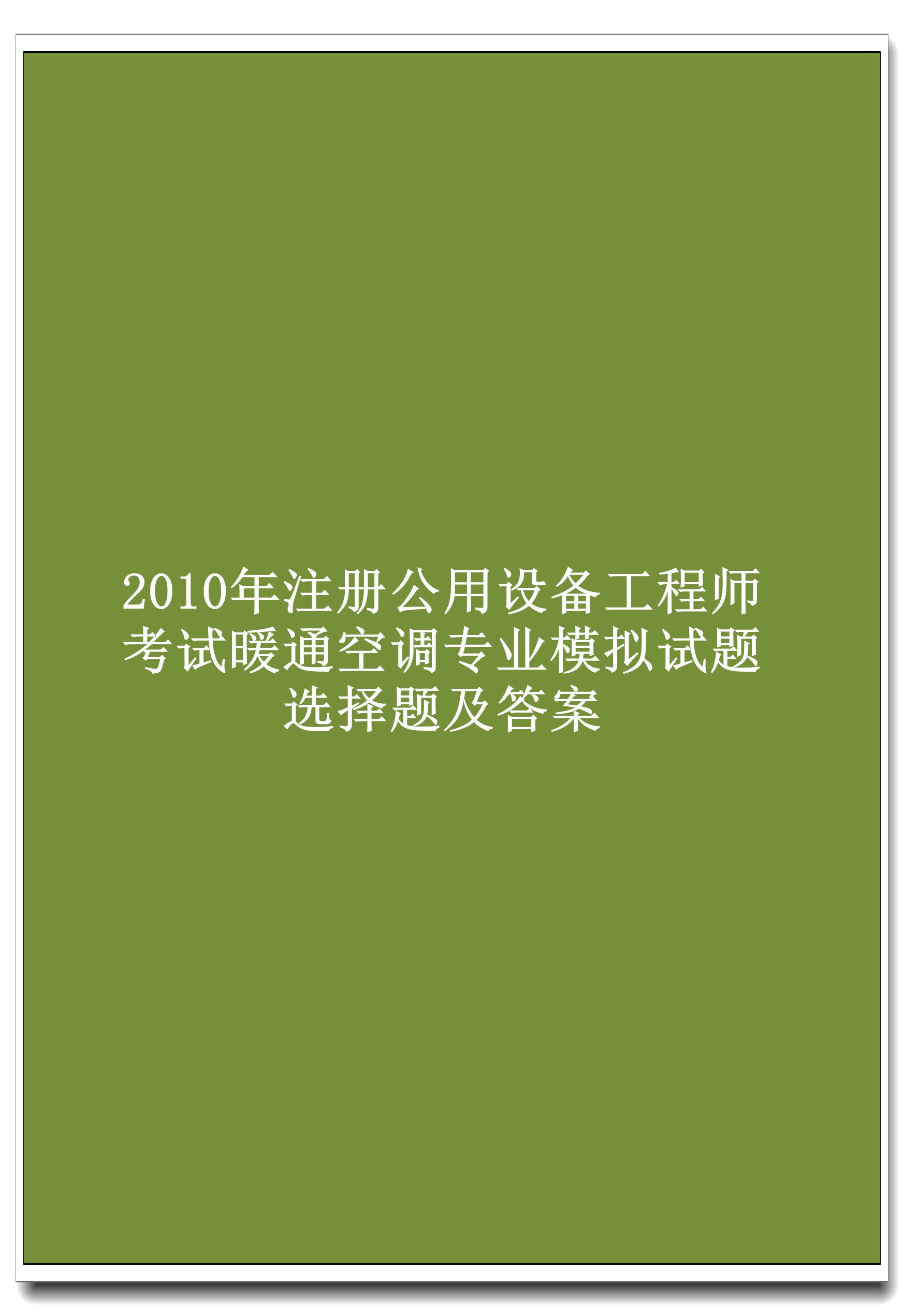 2010年注册公用设备工程师考试暖通空调专业模拟试题选择题及答案