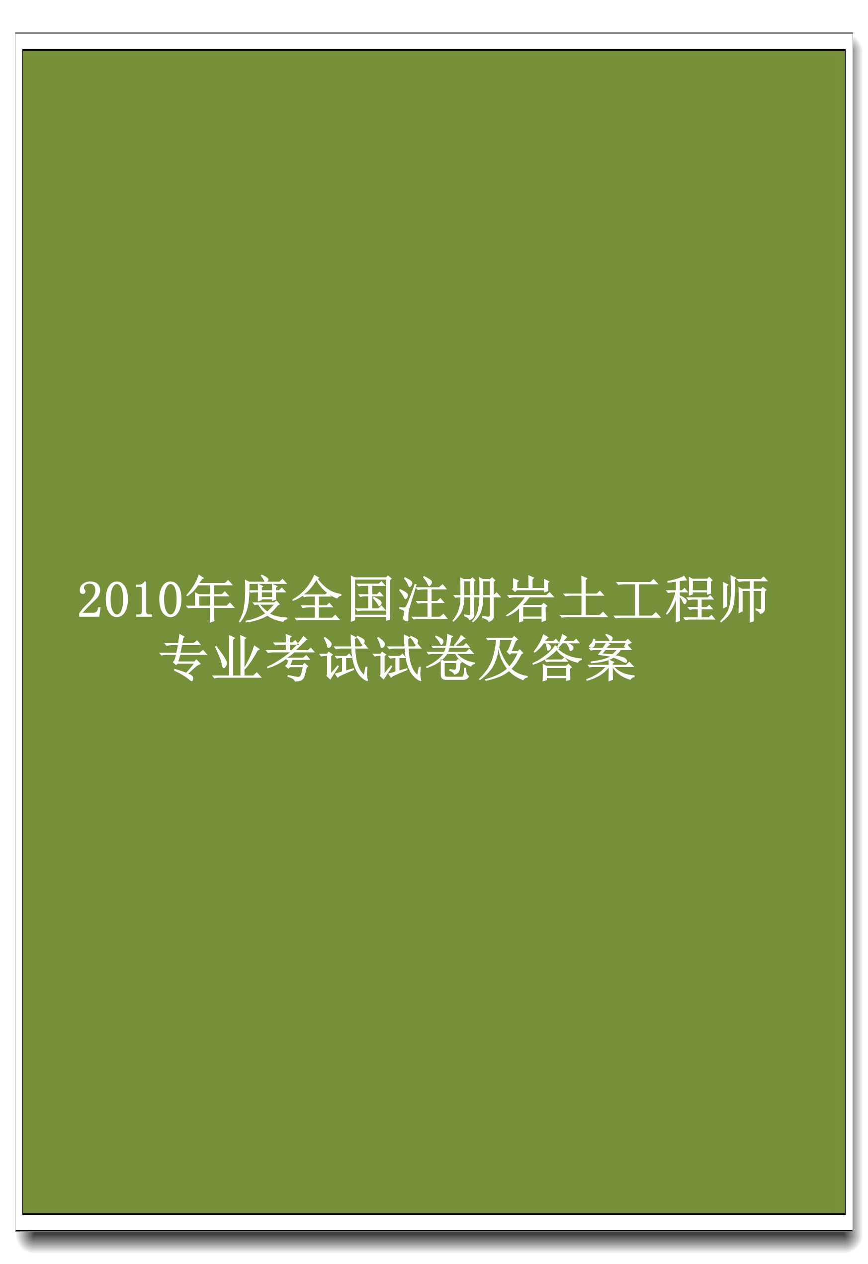 订单名称:2010 年度全国注册岩土工程师专业考试试卷及答案