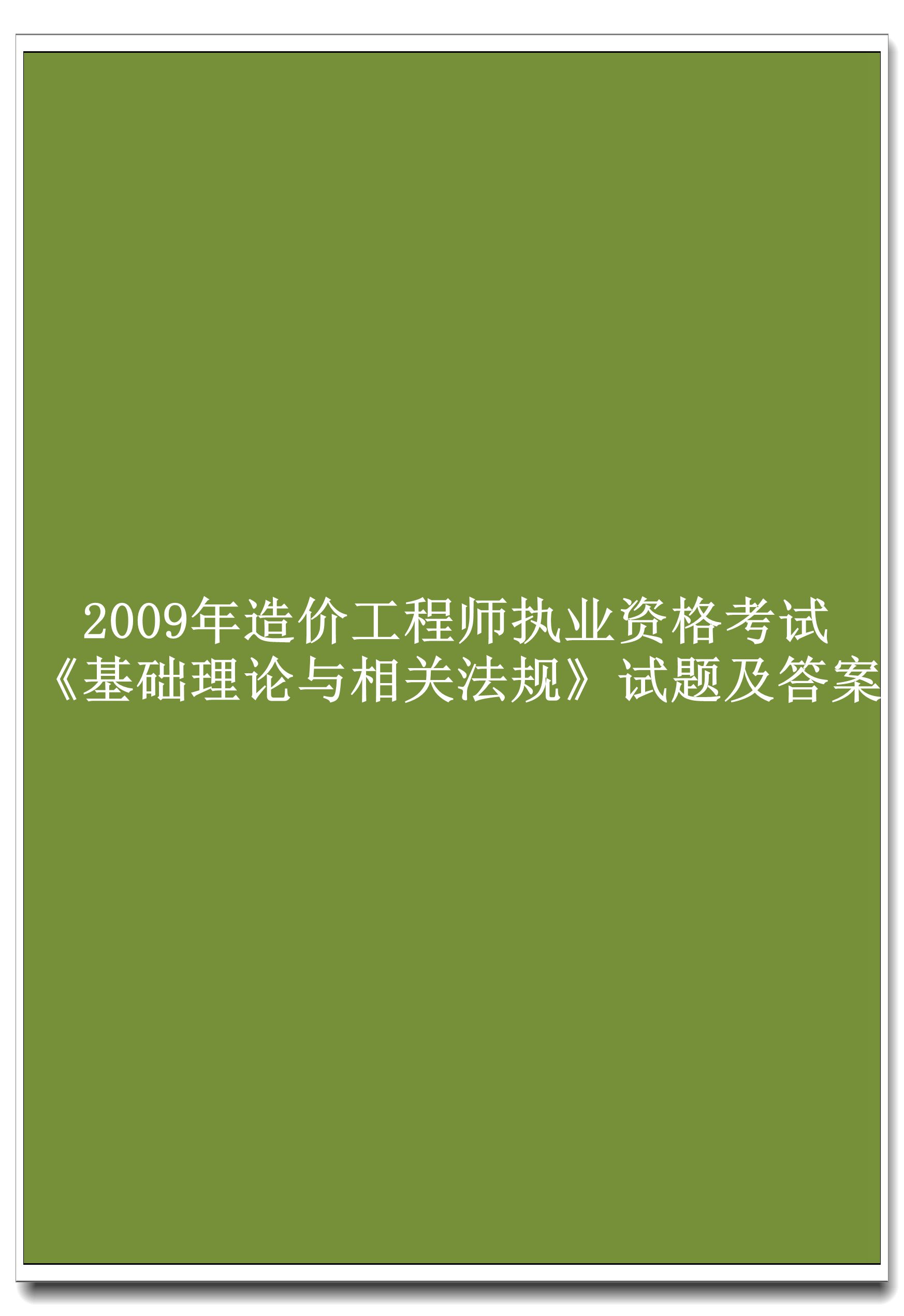 2009年造价工程师执业资格考试《基础理论与相关法规》试题及答案