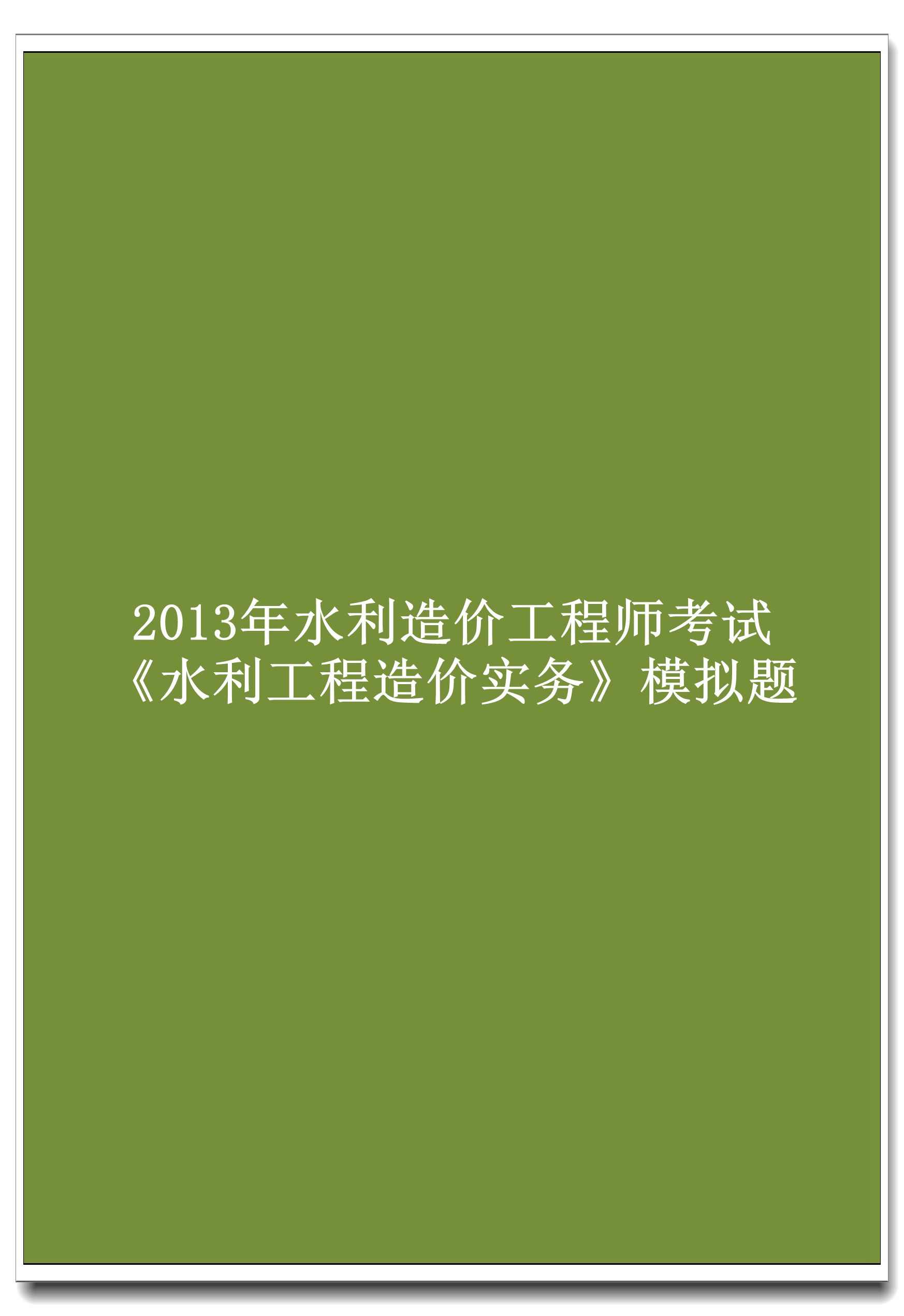 2013年水利造价工程师考试《水利工程造价实务》模拟题