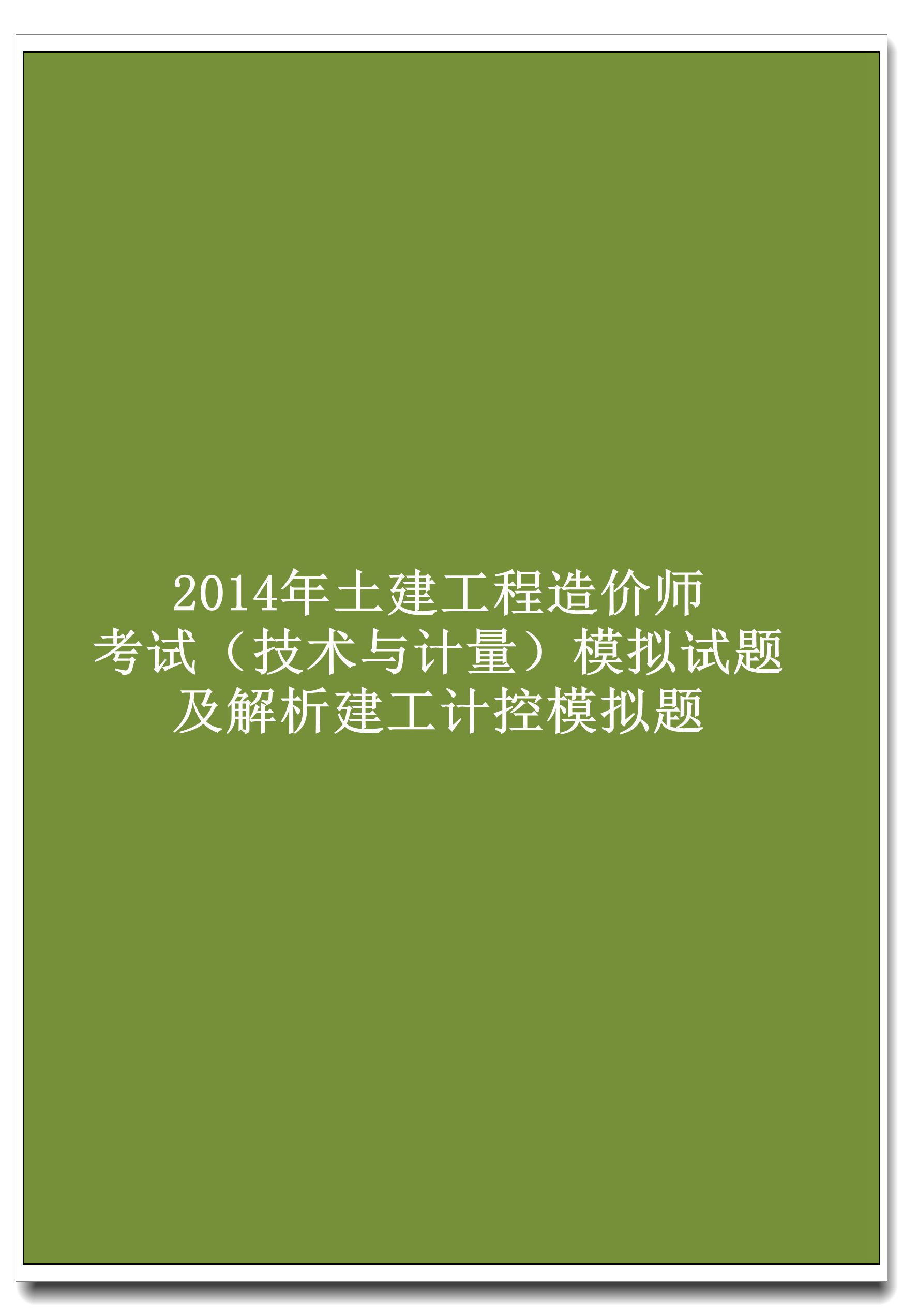 订单名称:2014年土建工程造价师考试(技术与计量)模拟试题及解析建工计控模拟题