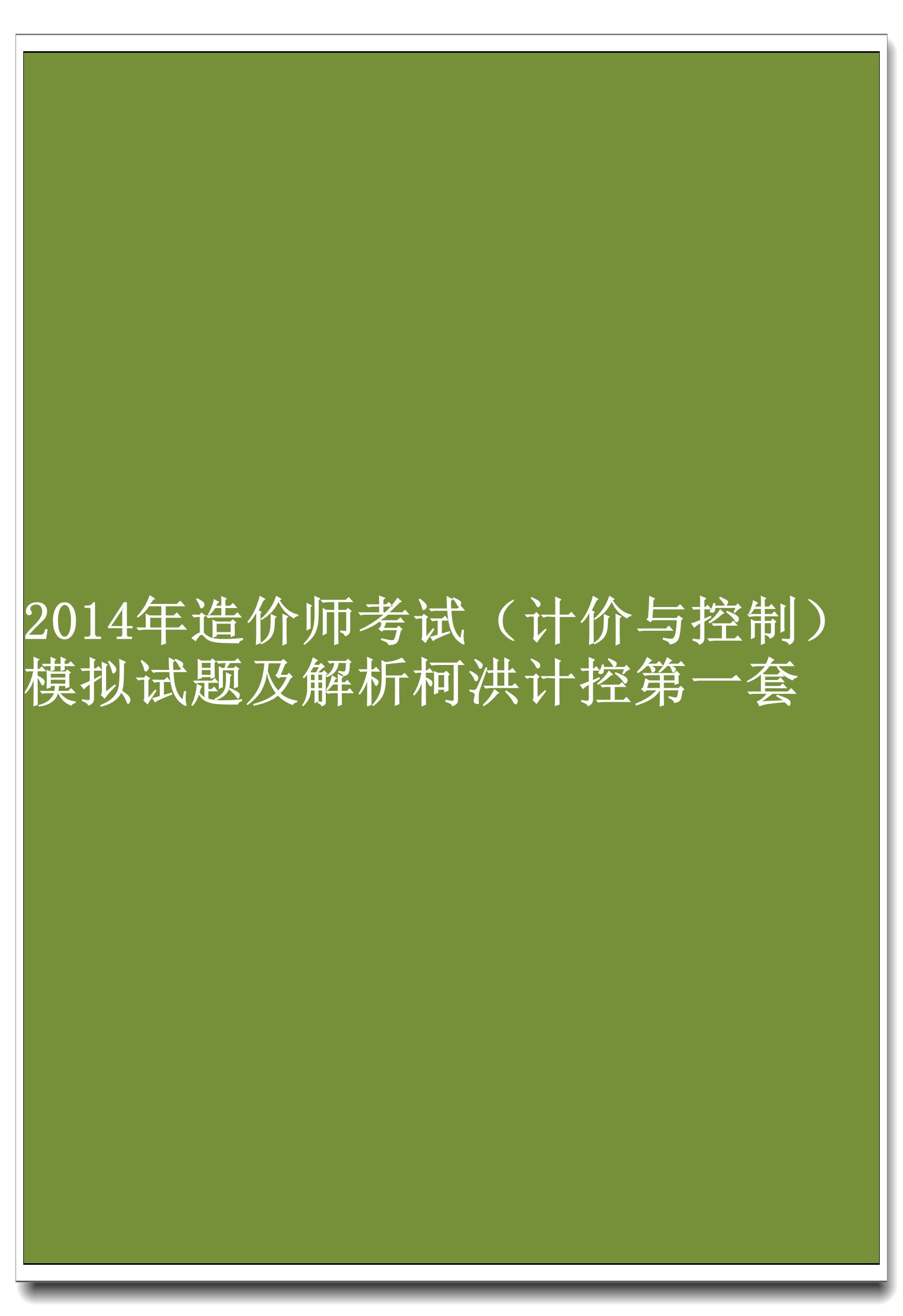 2014年造价师考试(计价与控制)模拟试题及解析柯洪计控第一套