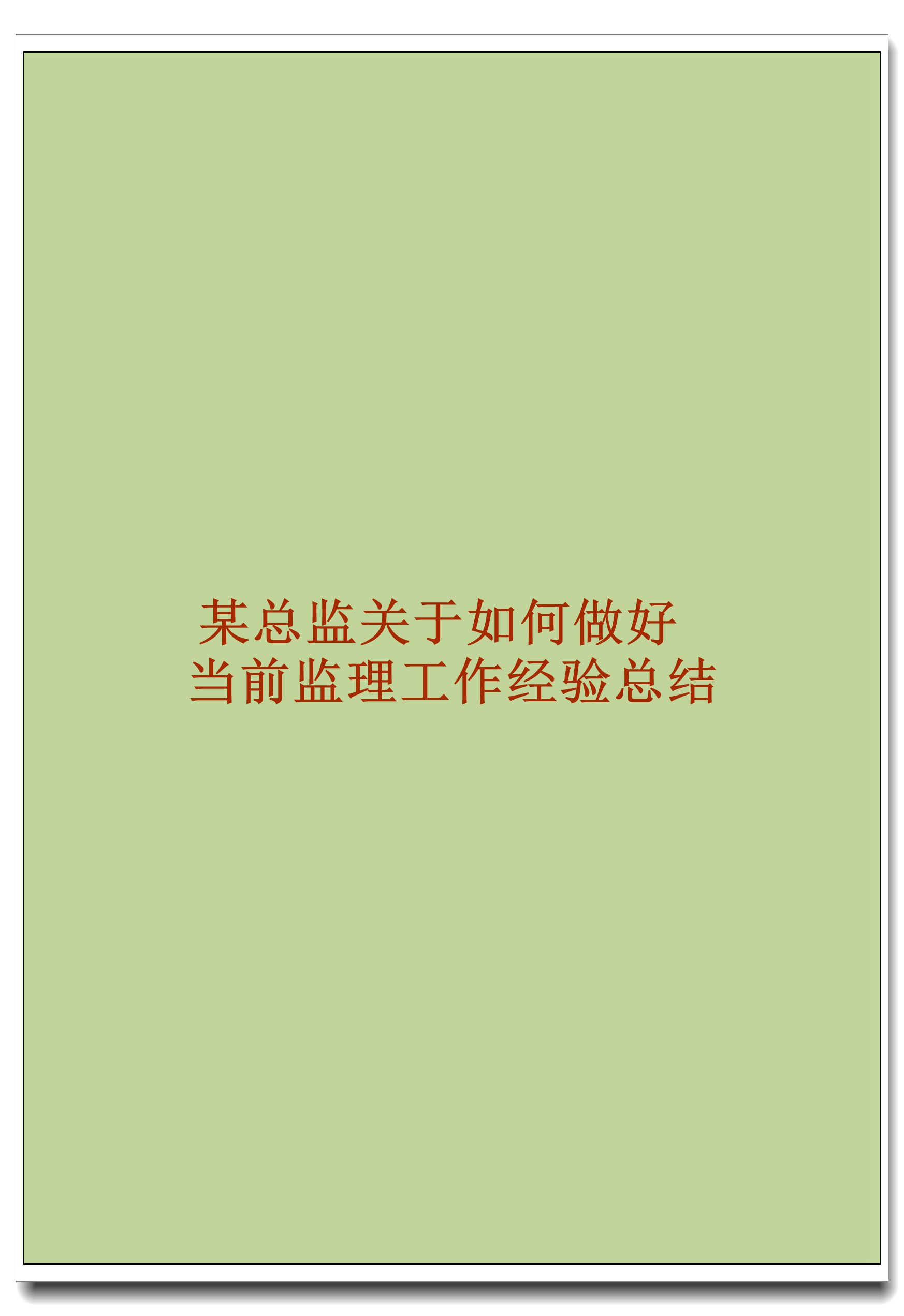 订单名称:某总监关于如何做好当前监理工作经验总结