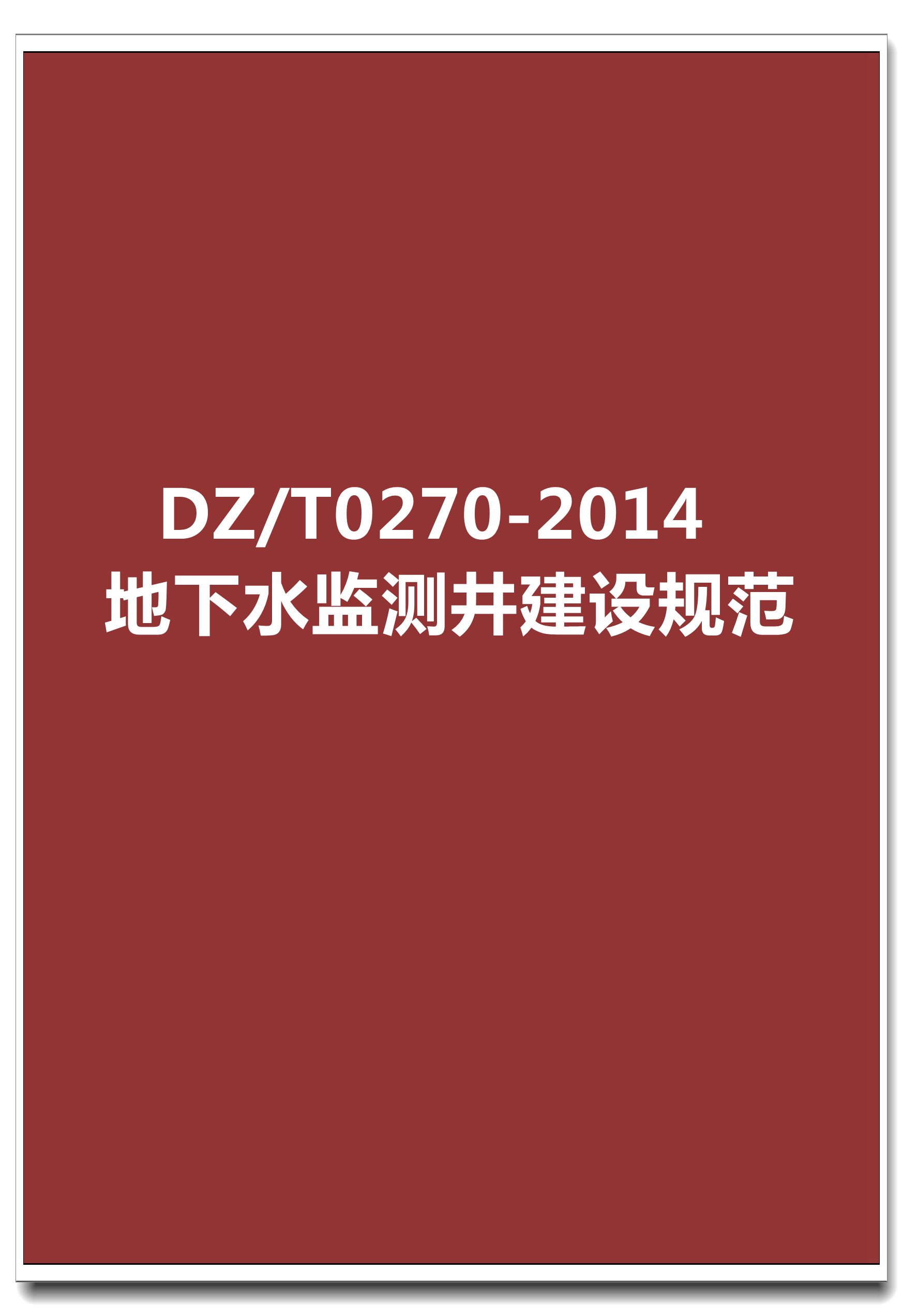 订单名称:DZ/T0270-2014地下水监测井建设规范