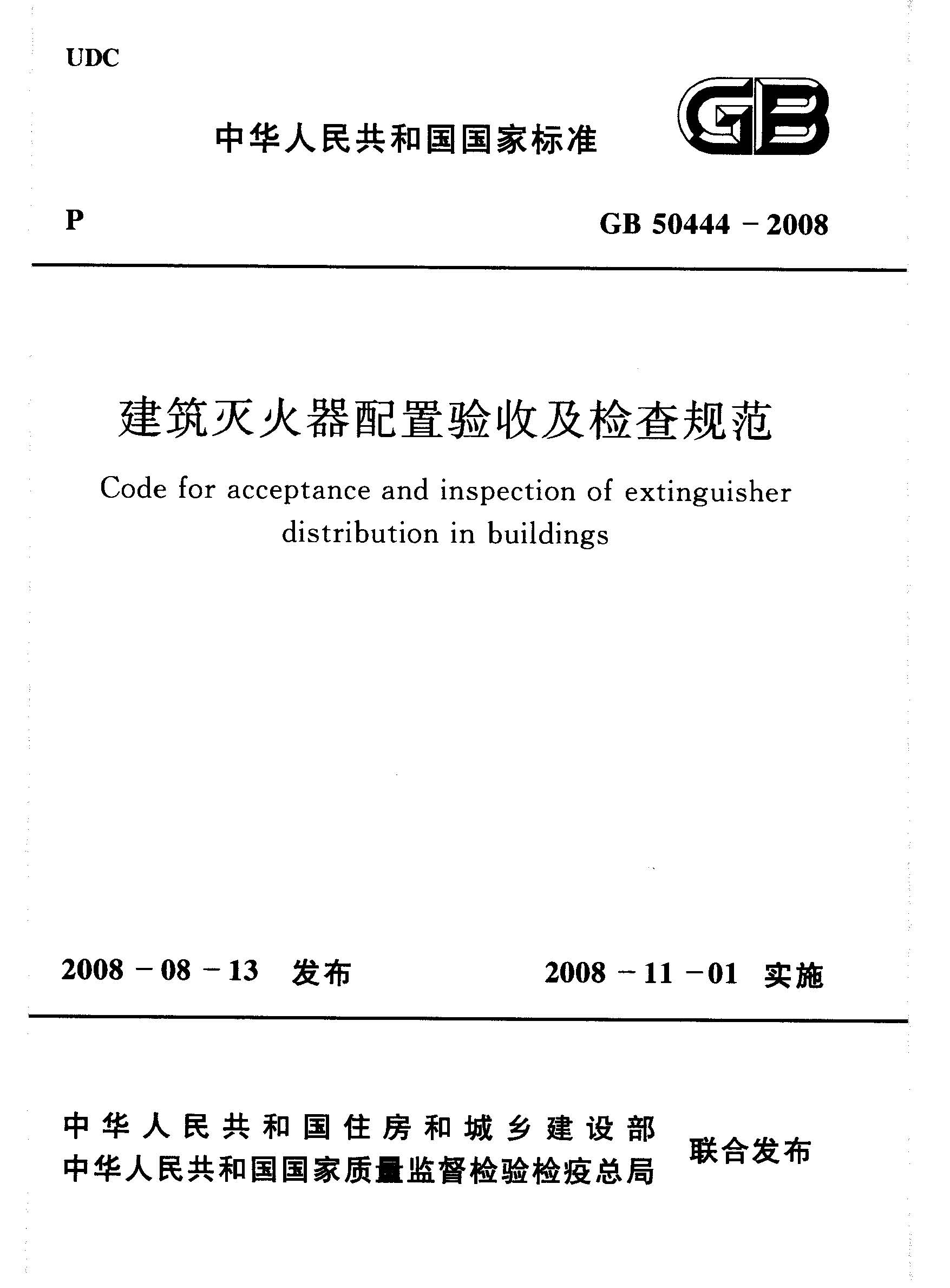GB50444-2008建筑灭火器配置验收及检查规范