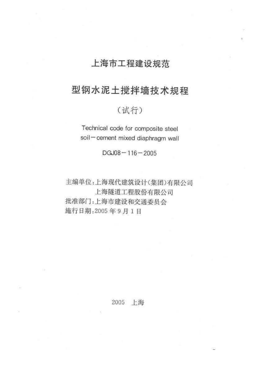 DGJ08-116-2005上海型钢水泥土搅拌墙技术规程(试行)