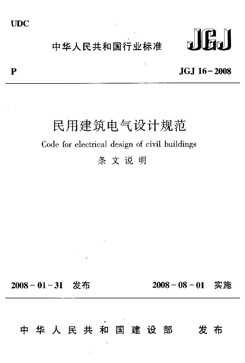 订单名称:JGJ16-2008民用建筑电气条文说明