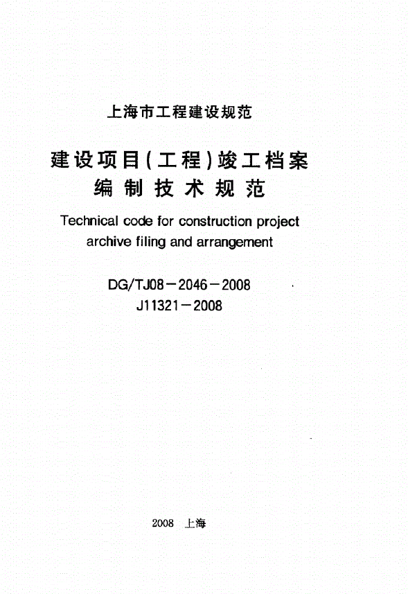 建设项目工程竣工档案编制技术规程DG-TJ08-2046-2008