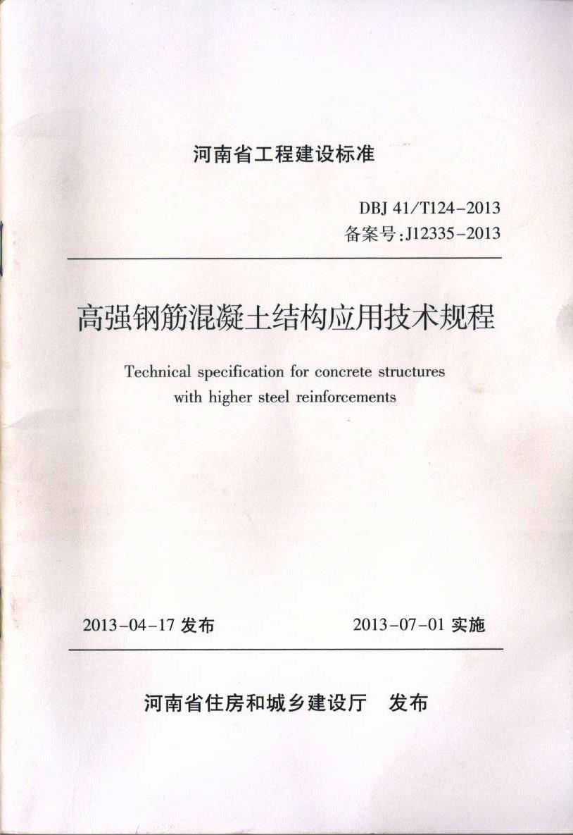 DBJ41/T124-2013高强钢筋混凝土结构应用技术规程