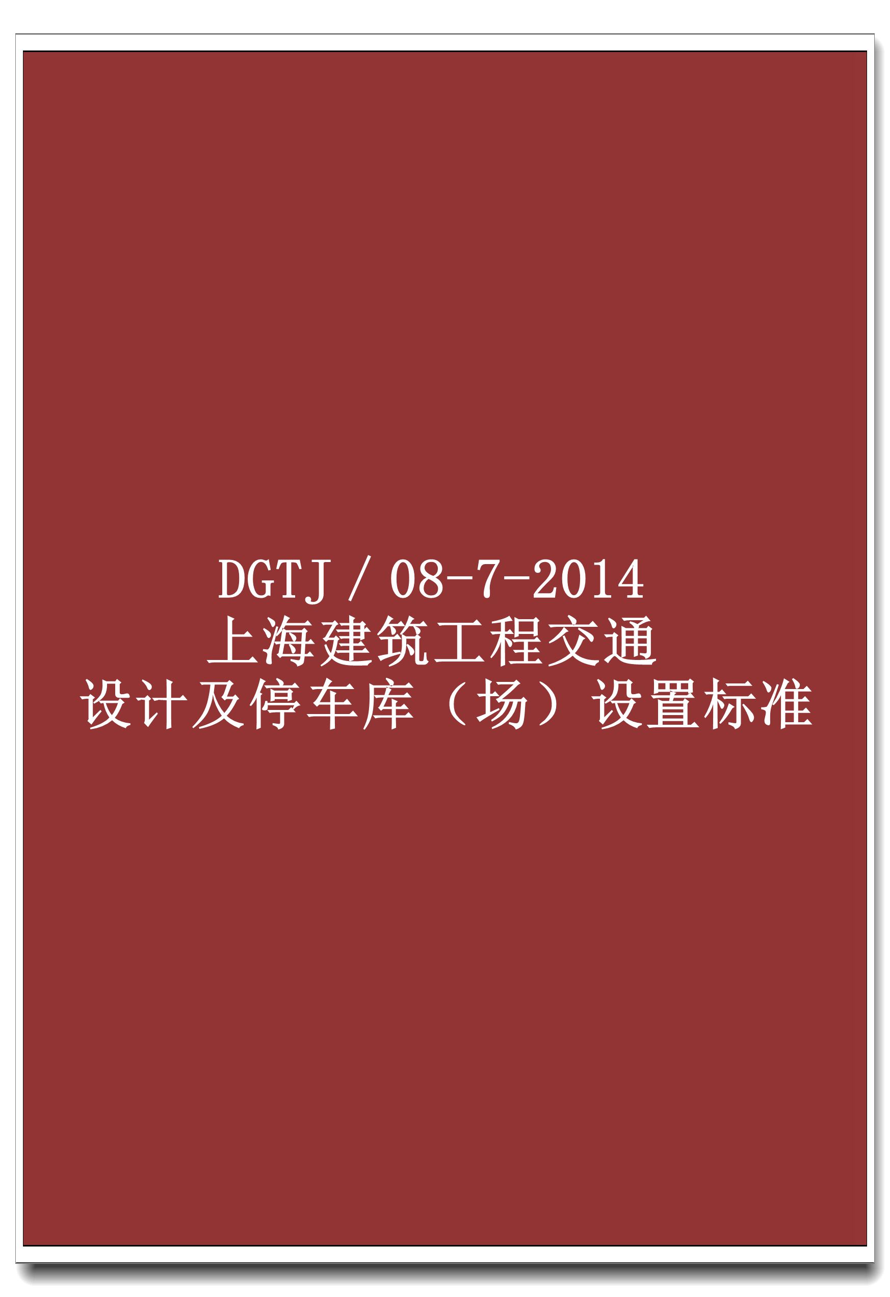 DGTJ/08-7-2014上海建筑工程交通设计及停车库(场)设置标准
