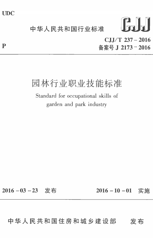 订单名称:CJJT237-2016园林行业职业技能标准
