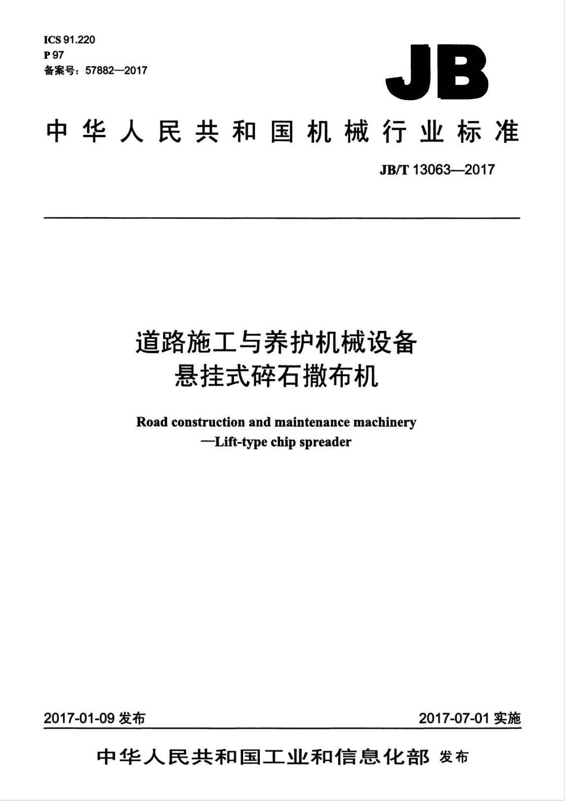 订单名称:JBT13063-2017道路施工与养护机械设备悬挂式碎石撒布机