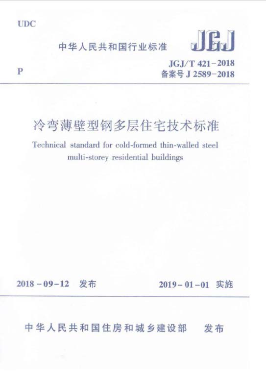 JGJ∕T421-2018冷弯薄壁型钢多层住宅技术标准