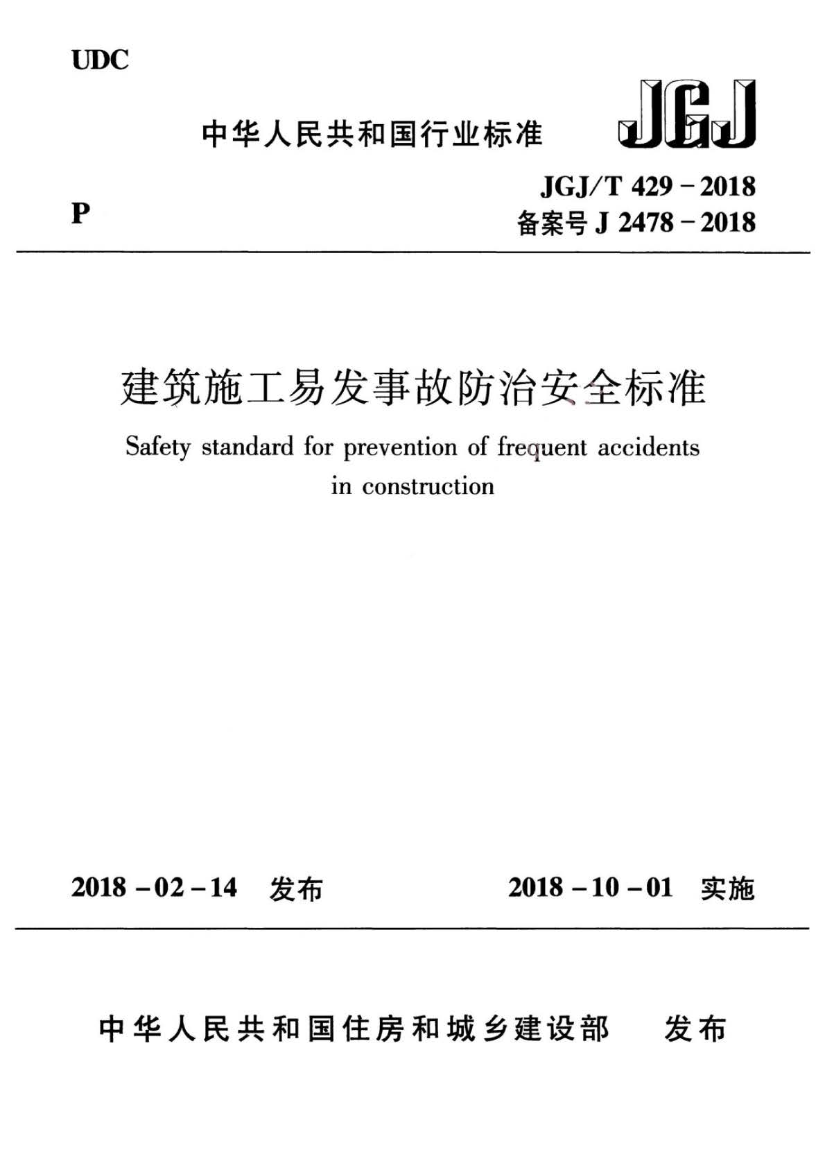 JGJ∕T429-2018建筑施工易发事故防治安全标准