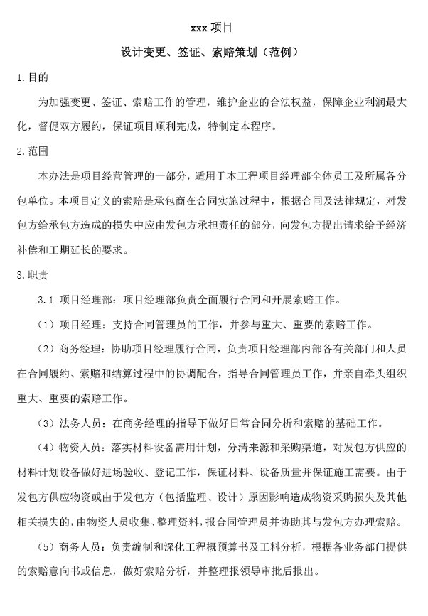 工程项目变更、签证、索赔策划(范例)