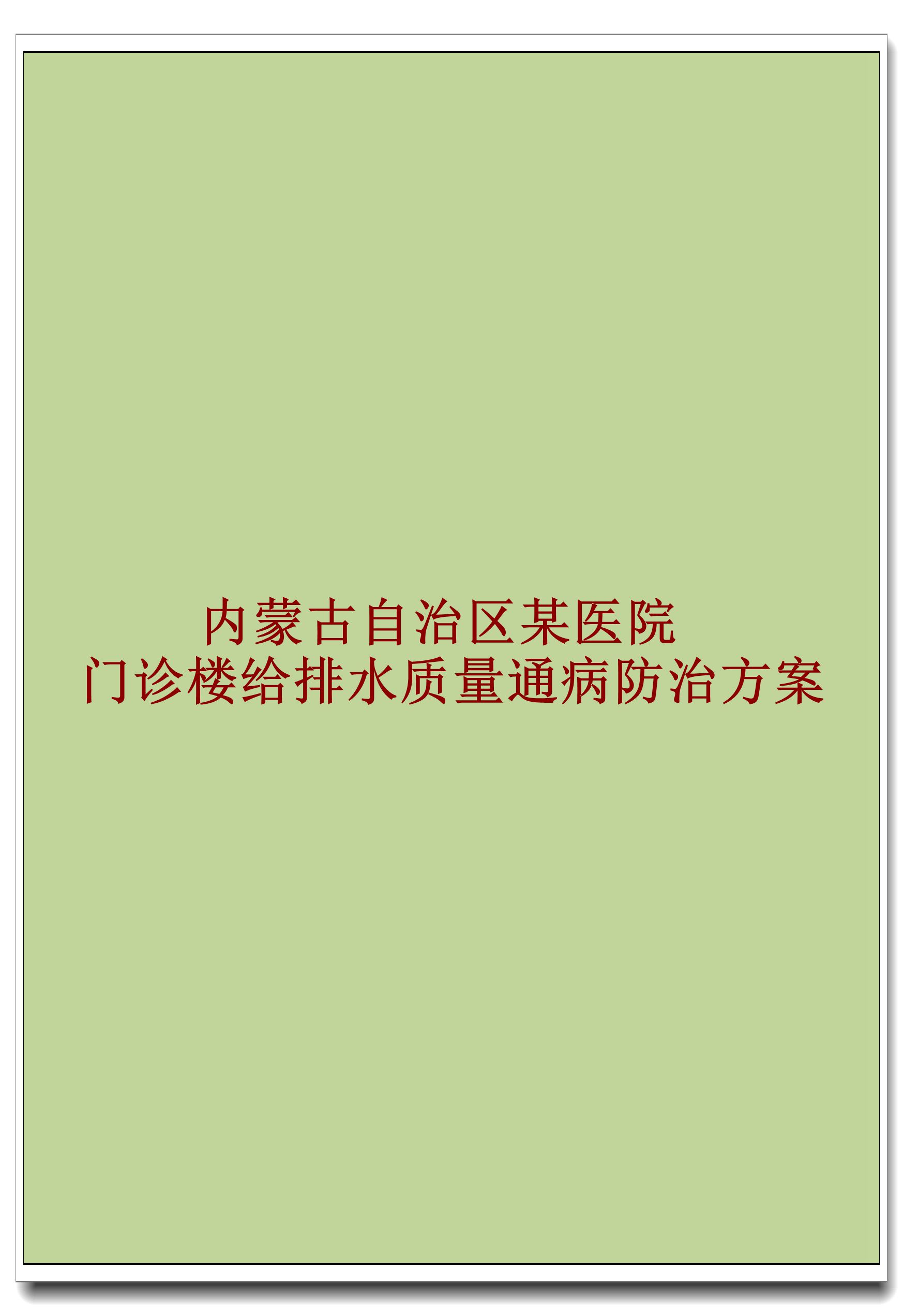订单名称:内蒙古自治区某医院门诊楼给排水质量通病防治方案