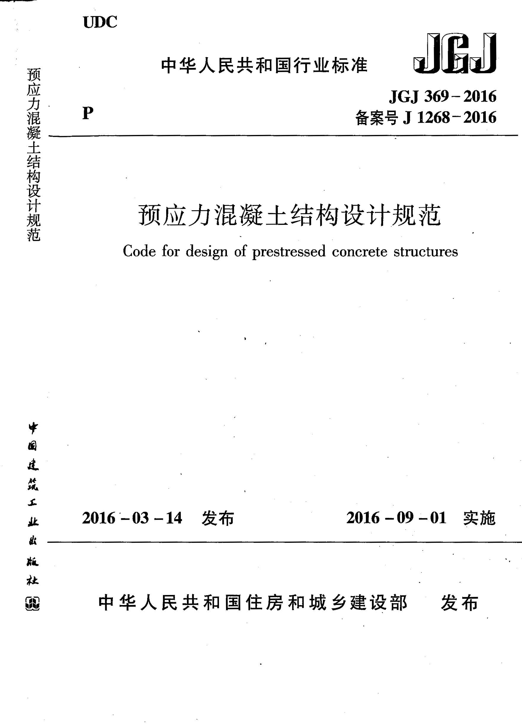 订单名称:JGJ369-2016预应力混凝土结构设计规范