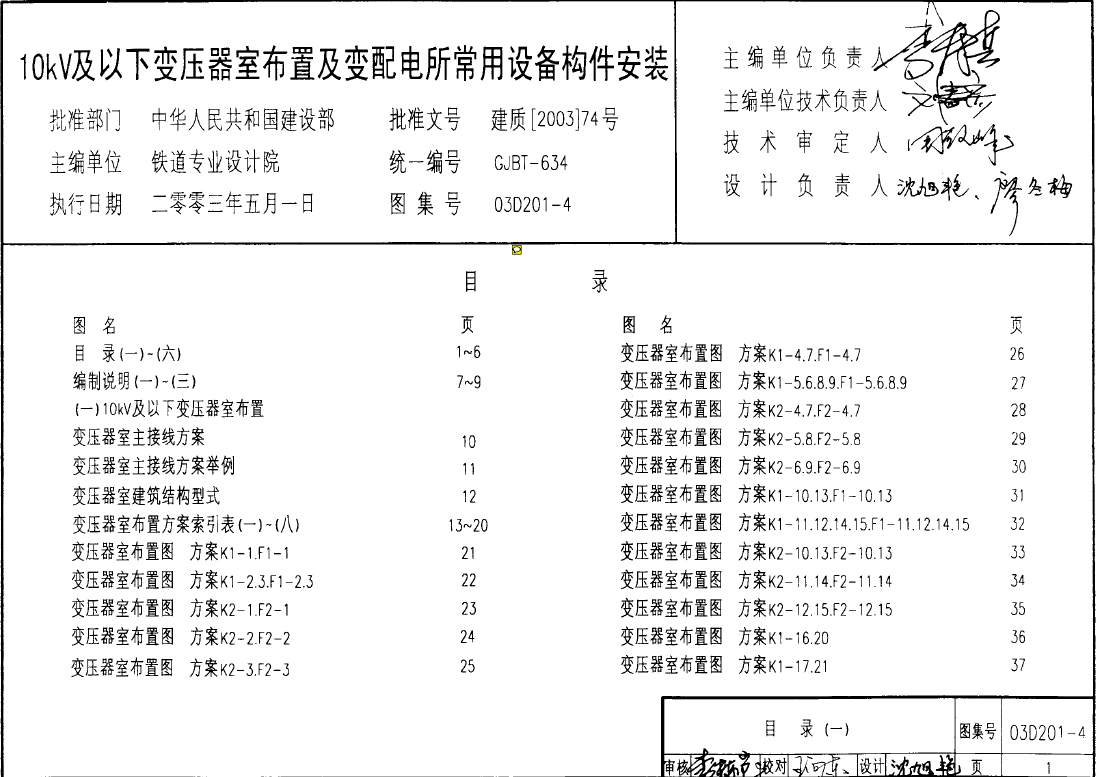 订单名称:03D201-410-0.4kV变压器室布置及变配电所常用设备构件安装