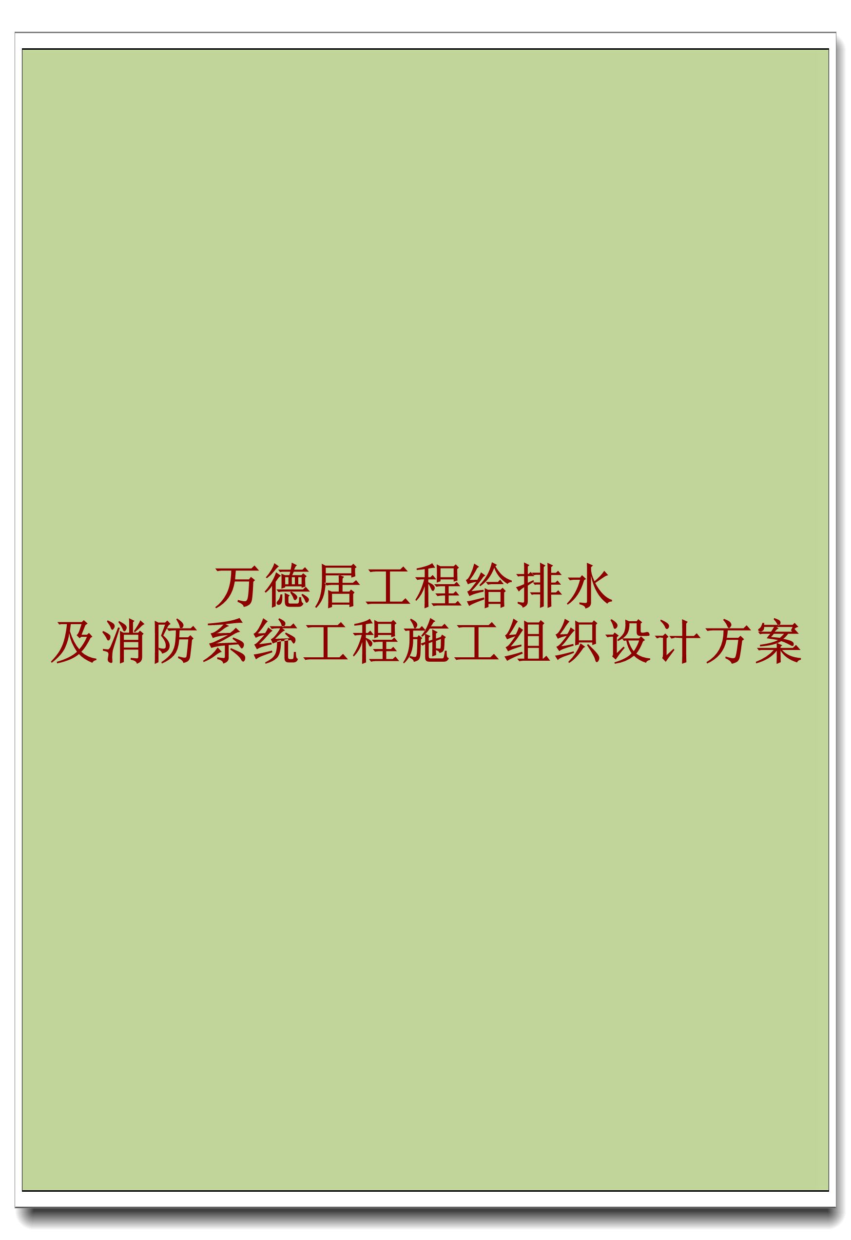 万德居工程给排水及消防系统工程施工组织设计方案