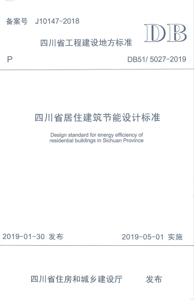 订单名称:DB515027-2019四川省居住建筑节能设计标准