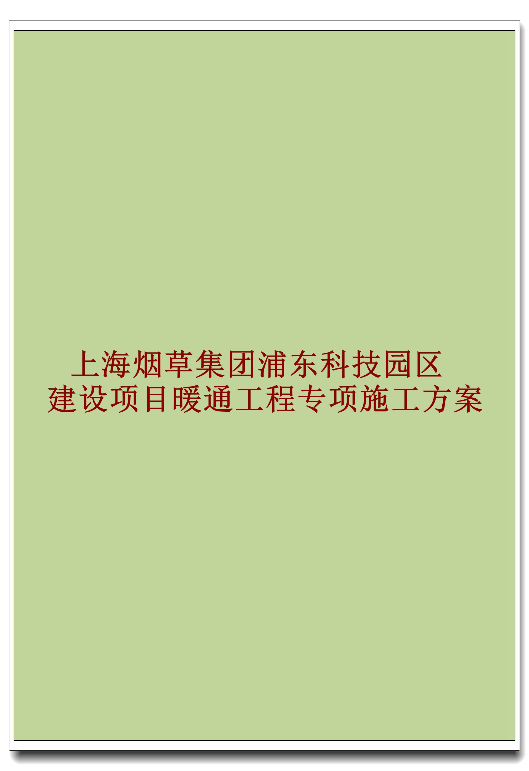上海烟草集团浦东科技园区建设项目暖通工程专项施工方案