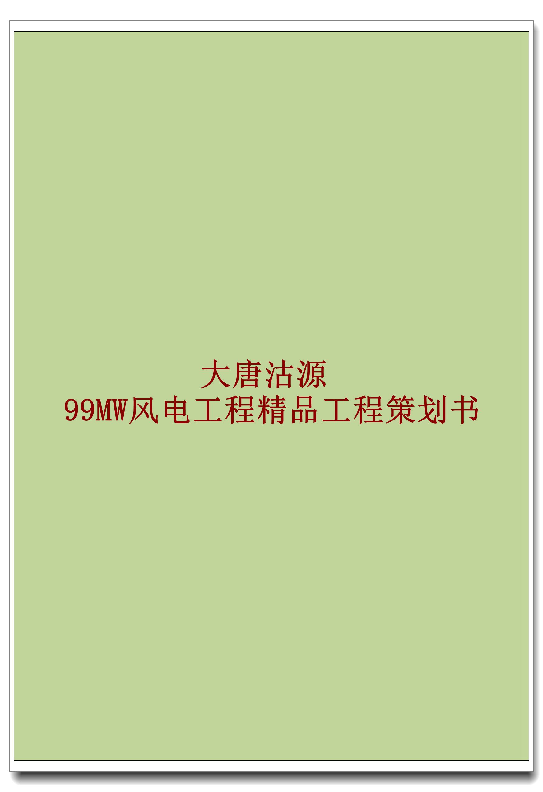 订单名称:大唐沽源99MW风电工程精品工程策划书