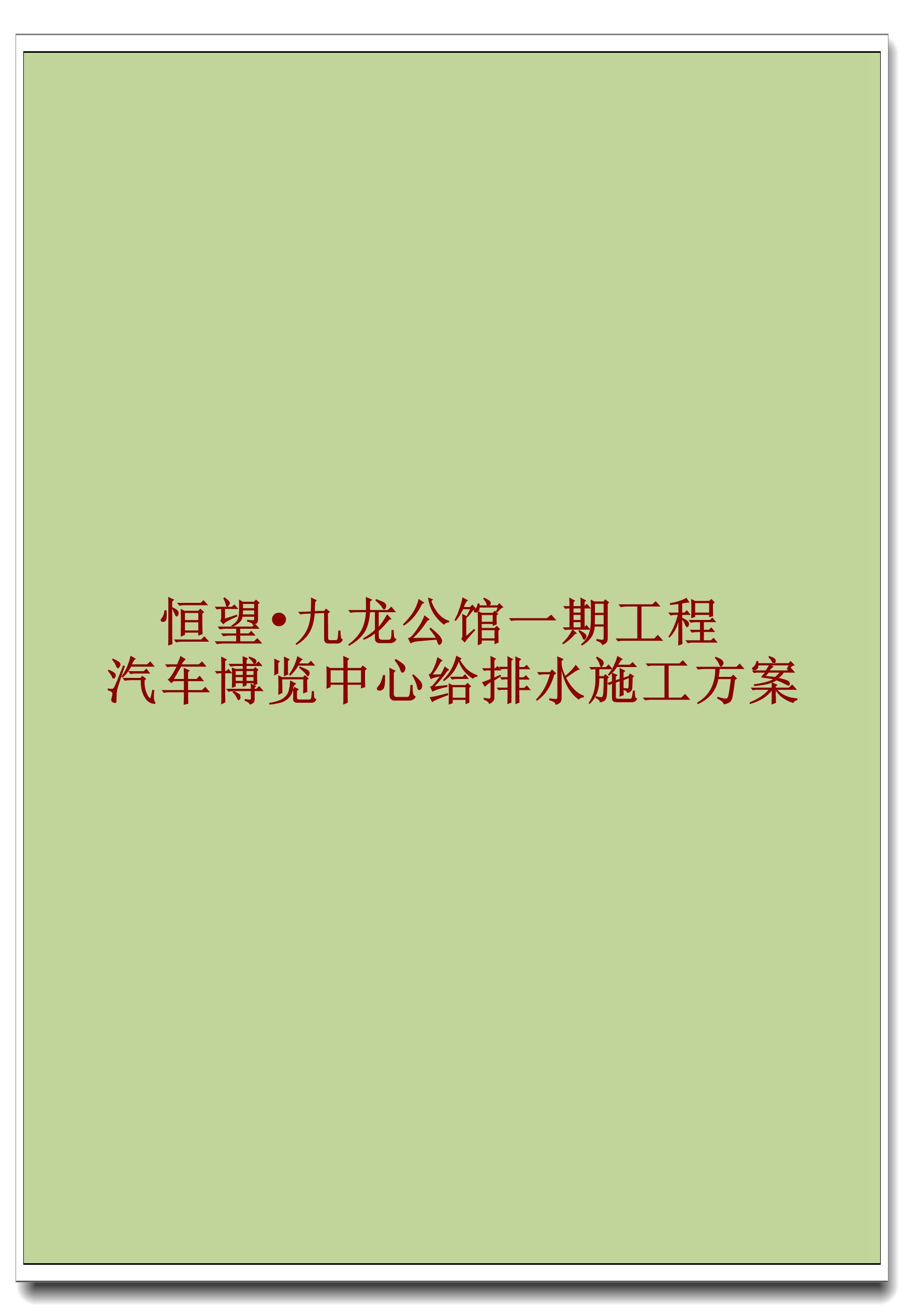 订单名称:恒望•九龙公馆一期工程汽车博览中心给排水施工方案