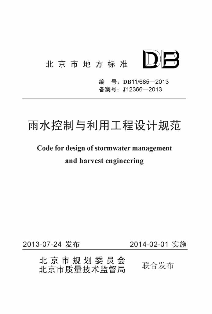 DB11-685-2013北京市地方标准雨水控制与利用工程设计规范