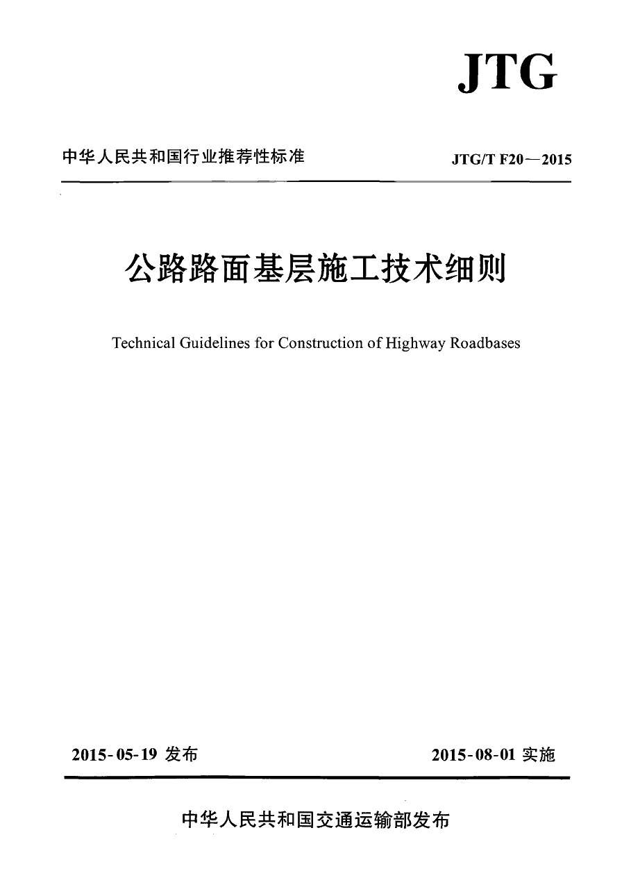 JTG-TF20-2015中华人民共和国行业推荐性标准公路路面基层施工技术细则