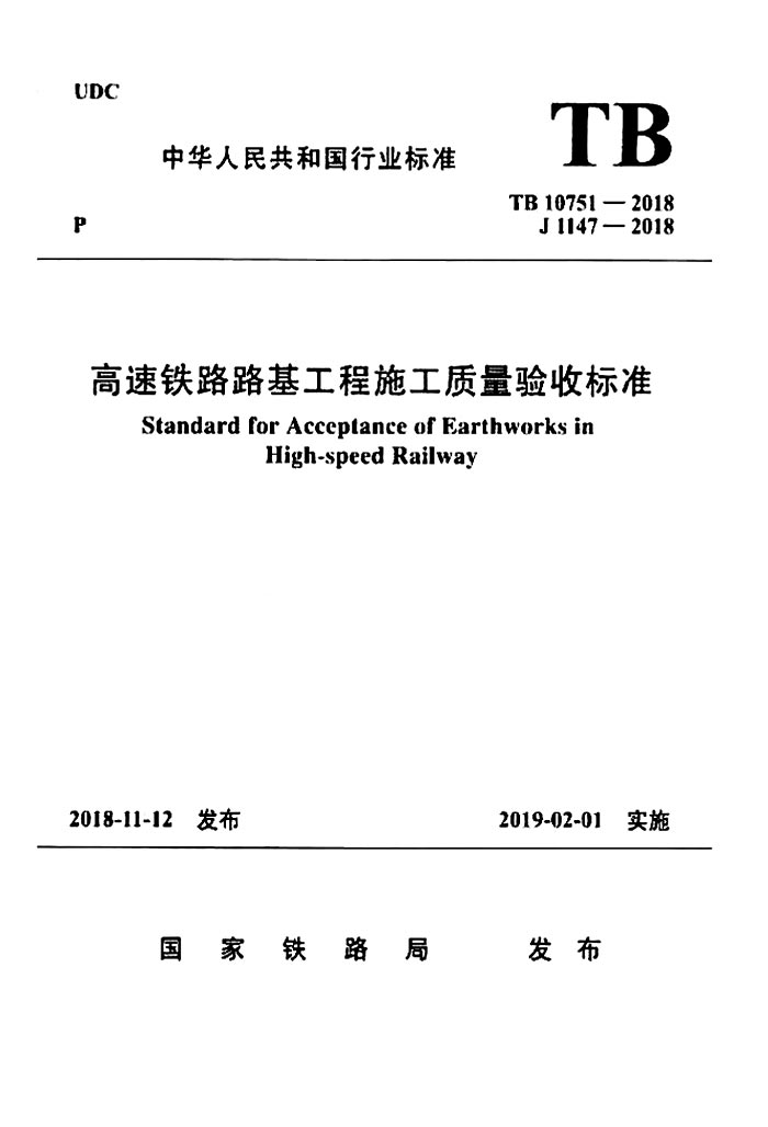 订单名称:TB10751-2018高速铁路路基工程施工质量验收标准