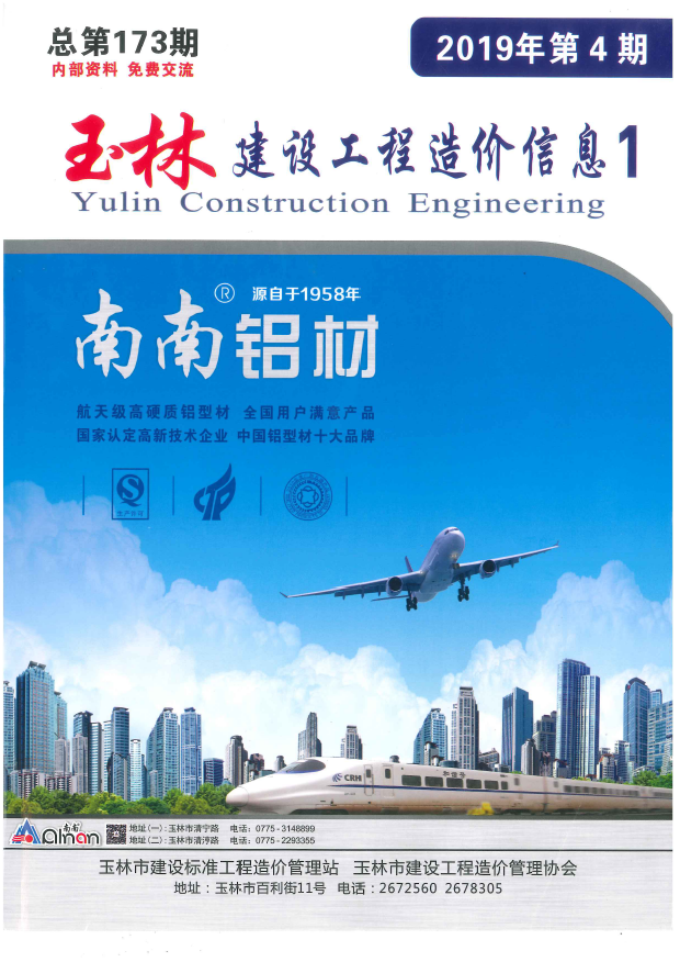订单名称:玉林市建设工程造价信息2019年4月