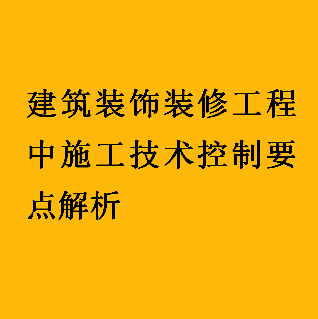 订单名称:建筑装饰装修工程中施工技术控制要点解析